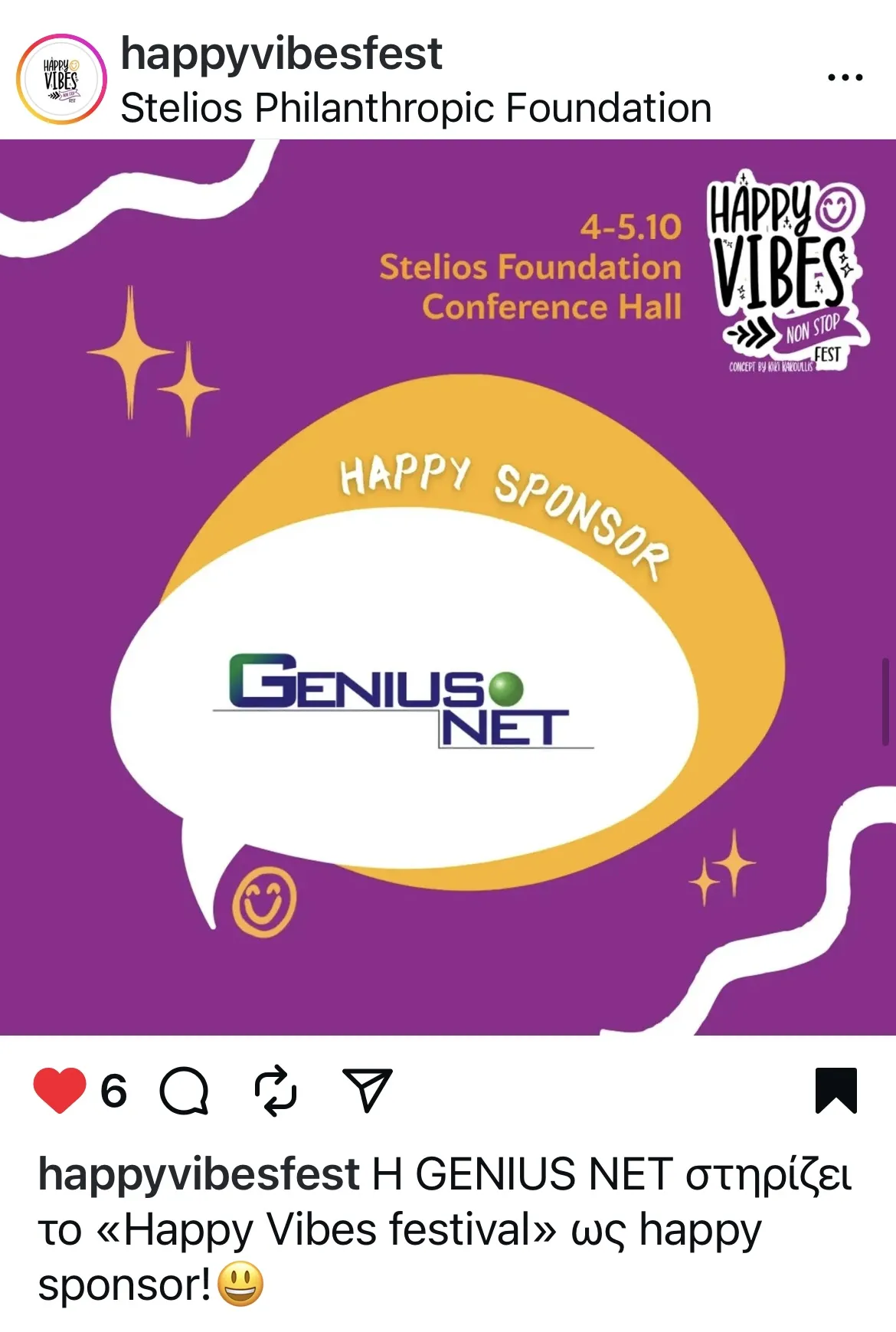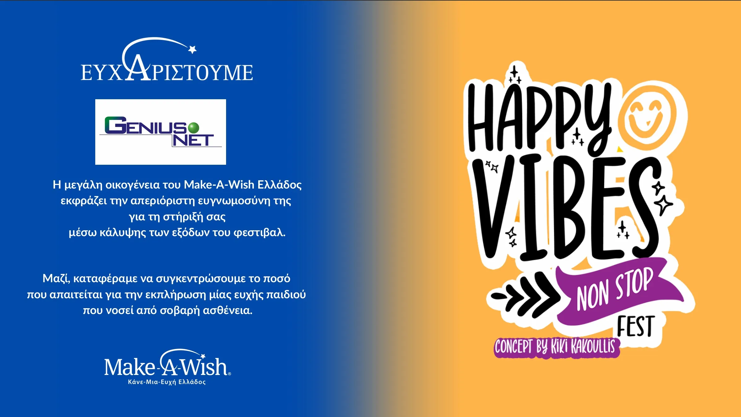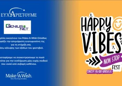 GENIUSNET S.A. was a happy sponsor of the Happy Vibes Festival that took place at the 4th and 5th of Octtober 2025 at Stelio’s Foundation in Plaka. All proceeds will be donated to Make-A-Wish Greece.